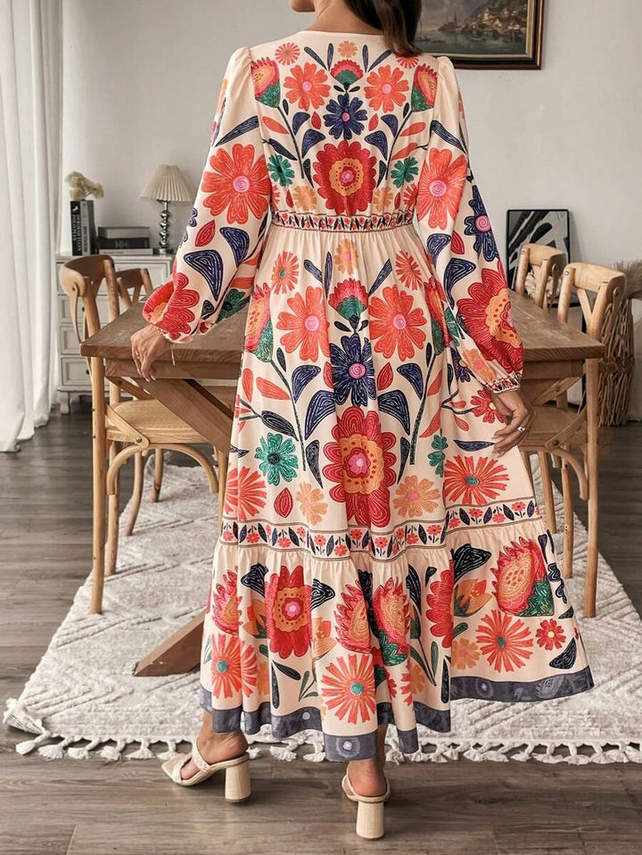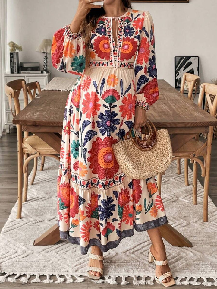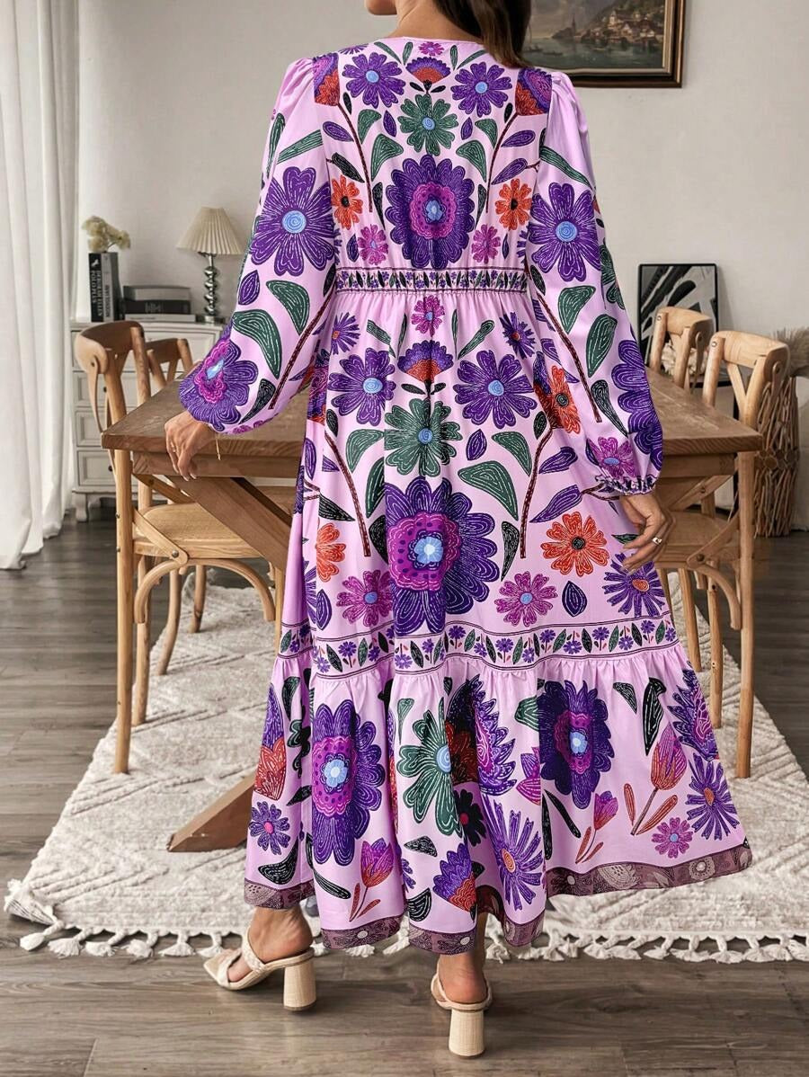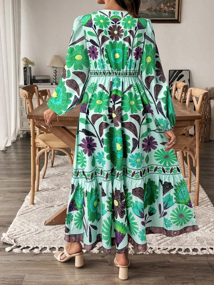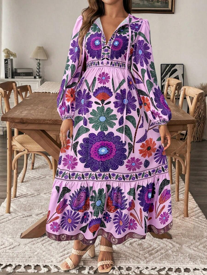 De Lushoire BloomBump is een charmante zwangerschapsjurk ontworpen voor stijl en comfort tijdens de zwangerschap. Met een vrouwelijke V-hals, een strik aan de voorkant en luchtige lantaarnmouwen straalt deze jurk elegantie uit. De lange, soepelvallende pasvorm en de subtiele plantenprint maken dit de perfecte keuze voor lente en zomer.