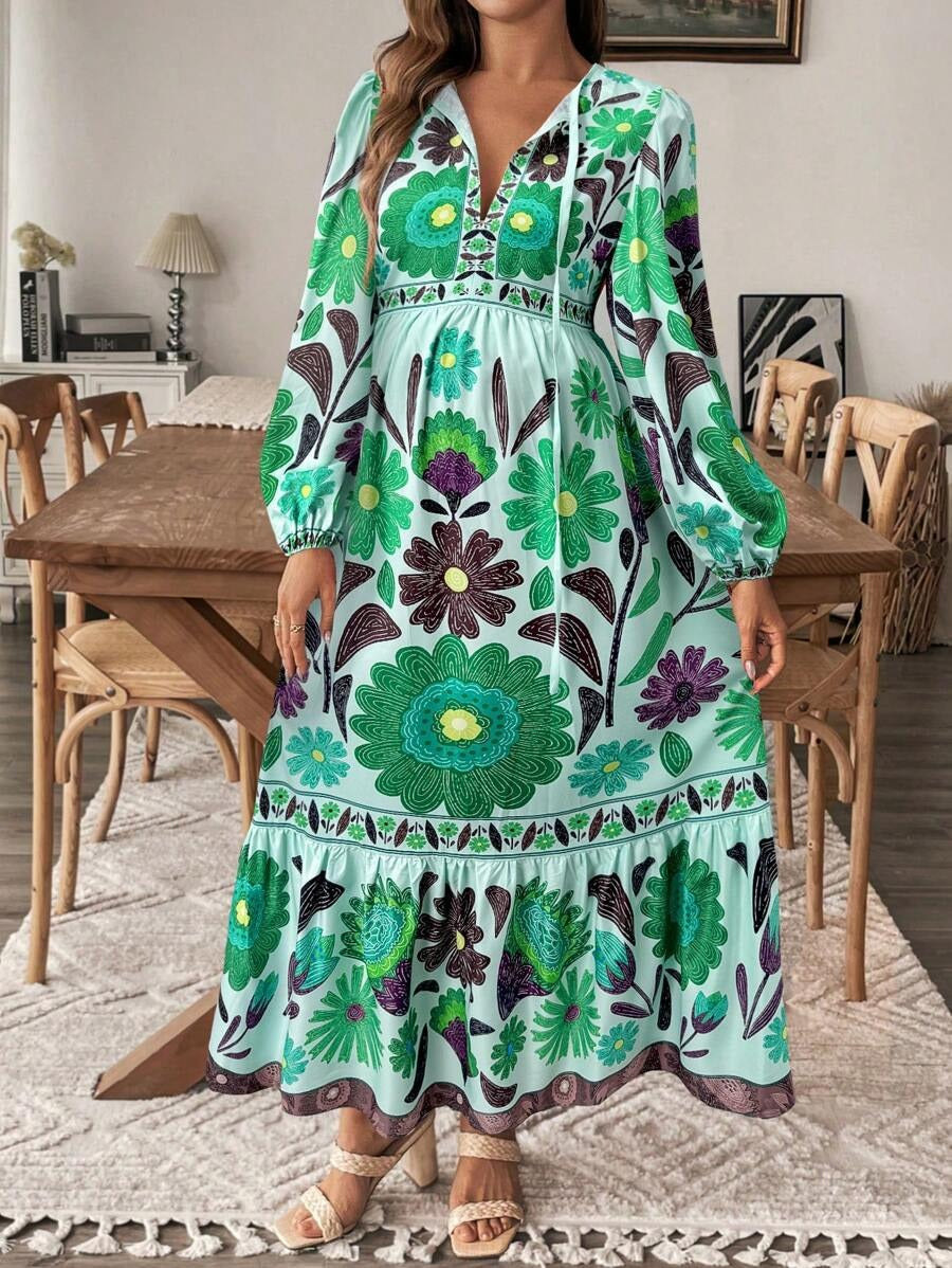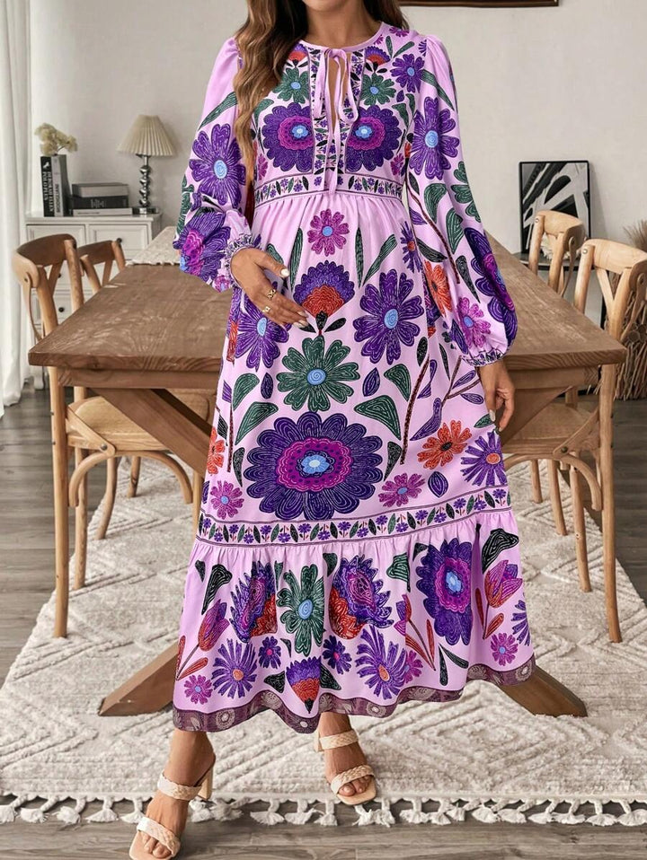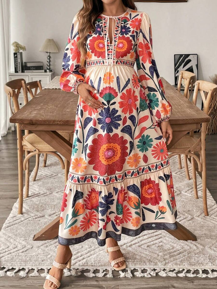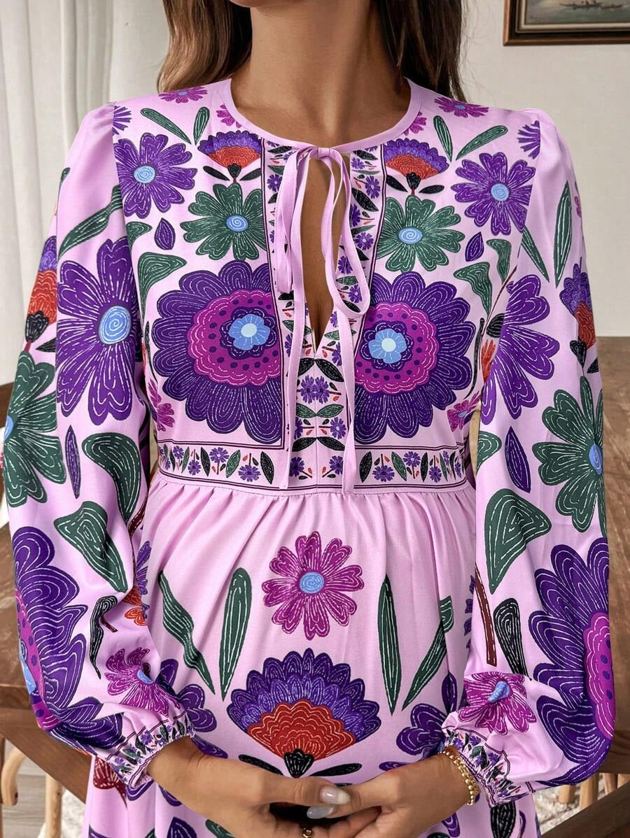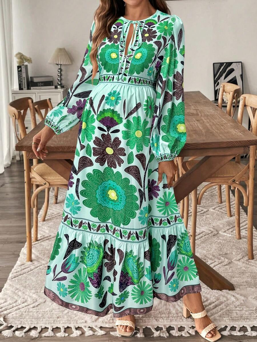 Zwangerschapsjurk met Plantenprint en Striksluiting