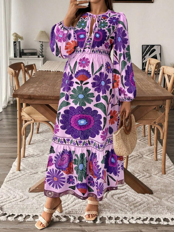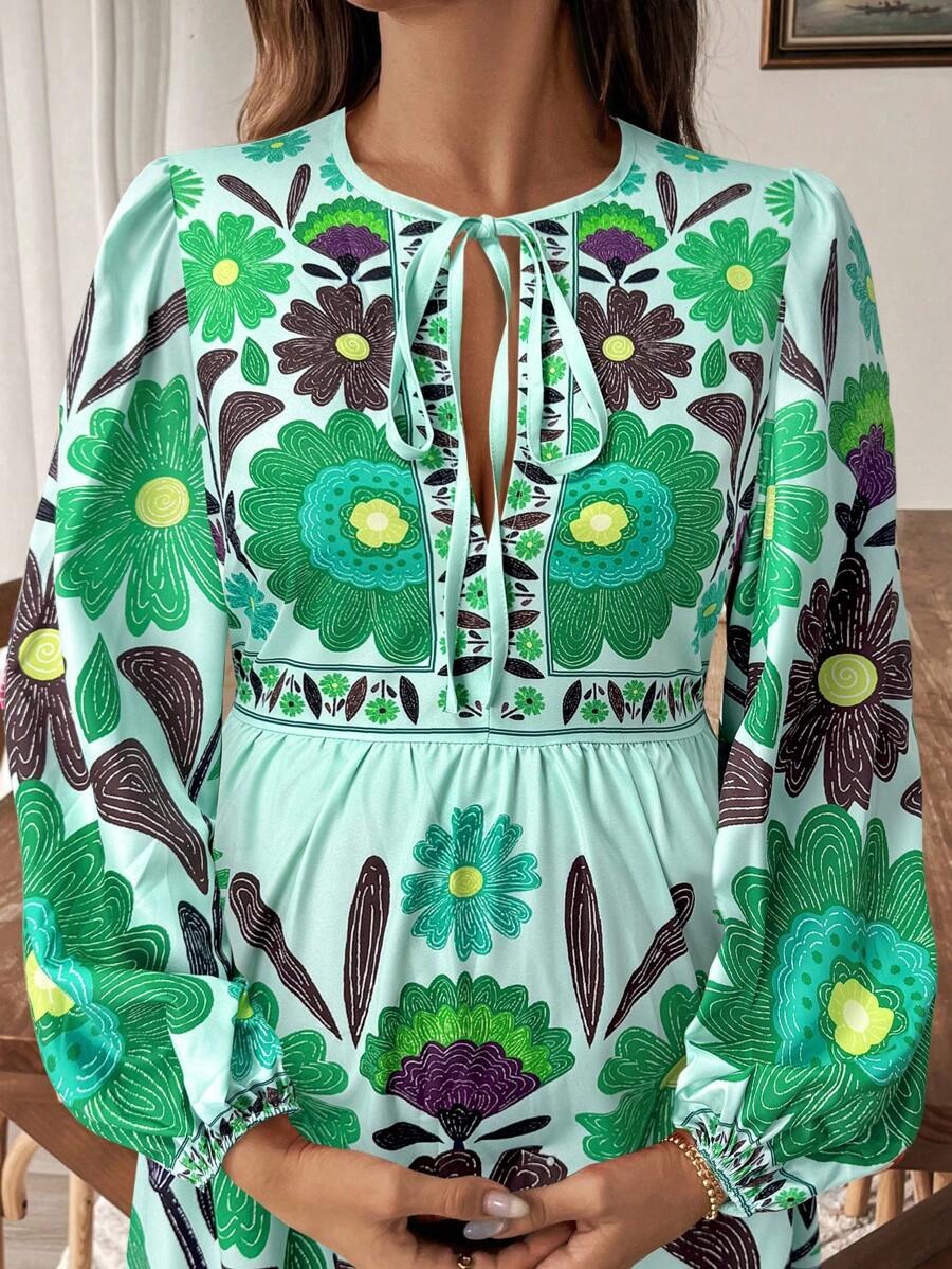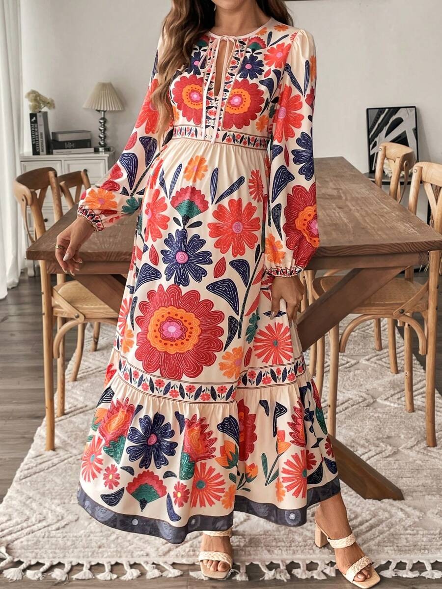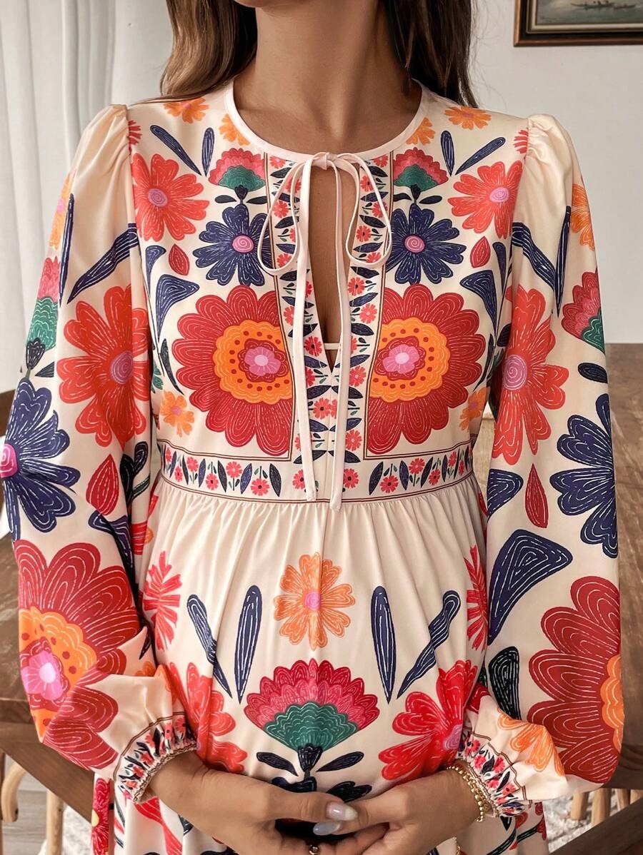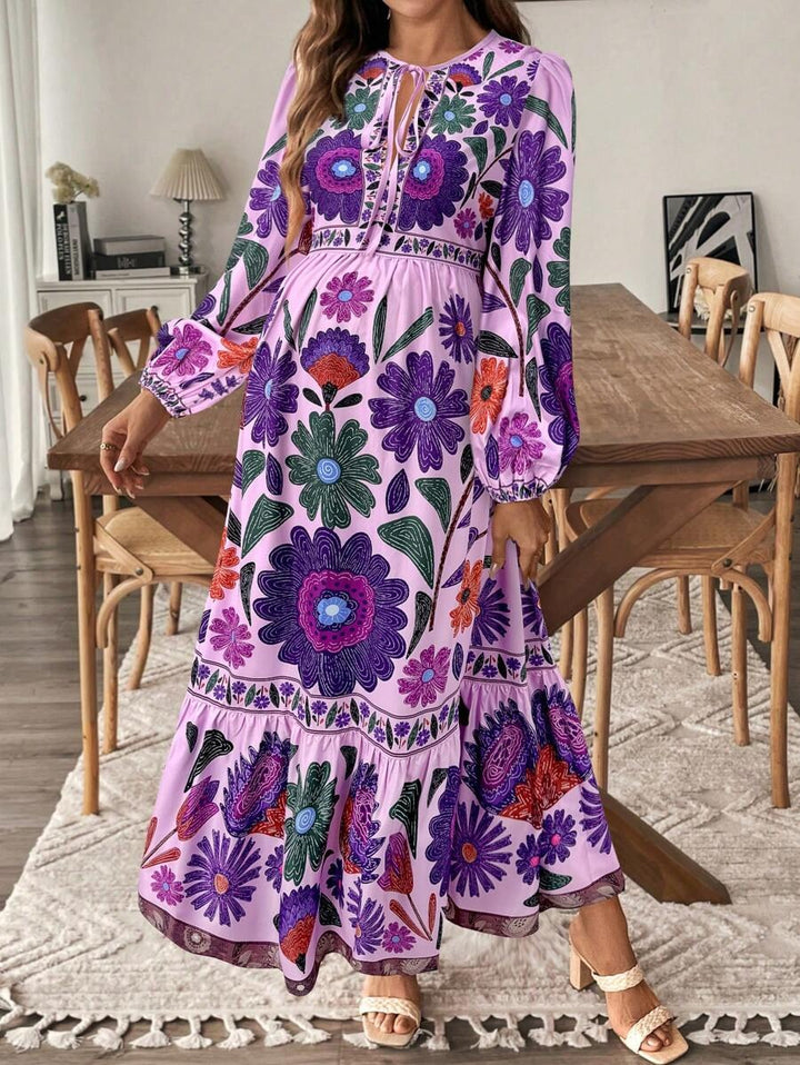 Zwangerschapsjurk met Plantenprint en Striksluiting