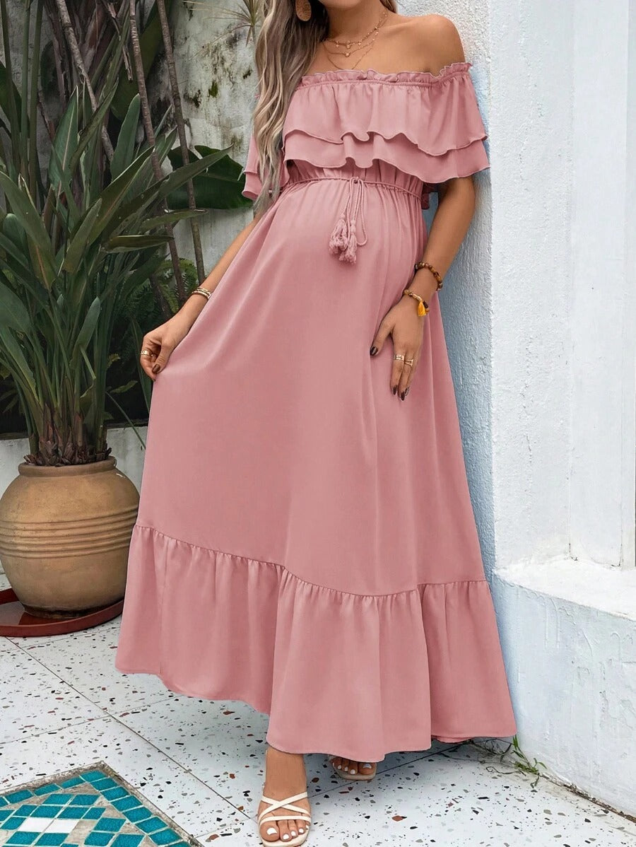 Zwangerschapsjurk met Ruffles en Plissé Rand