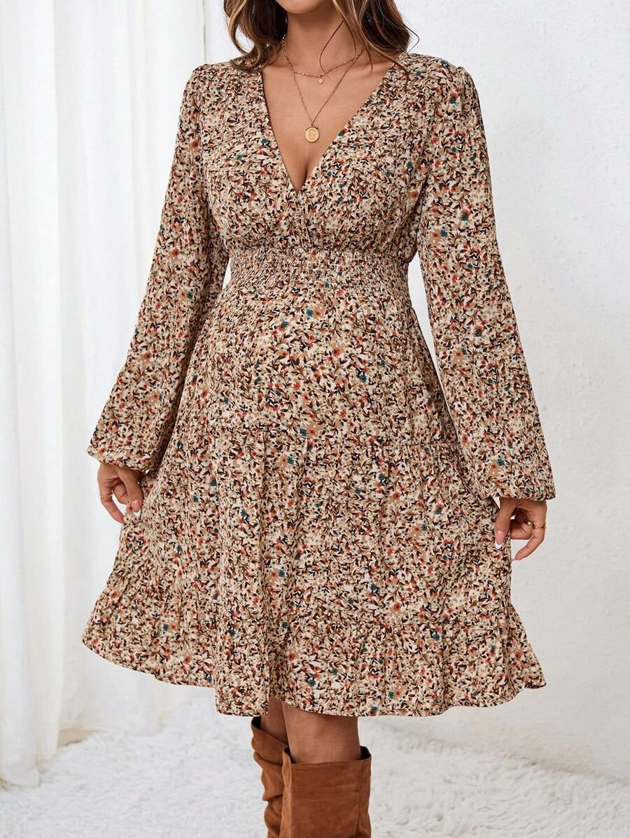 Zwangerschapsjurk met Diepe V-Hals en Fijne Bloemenprint
