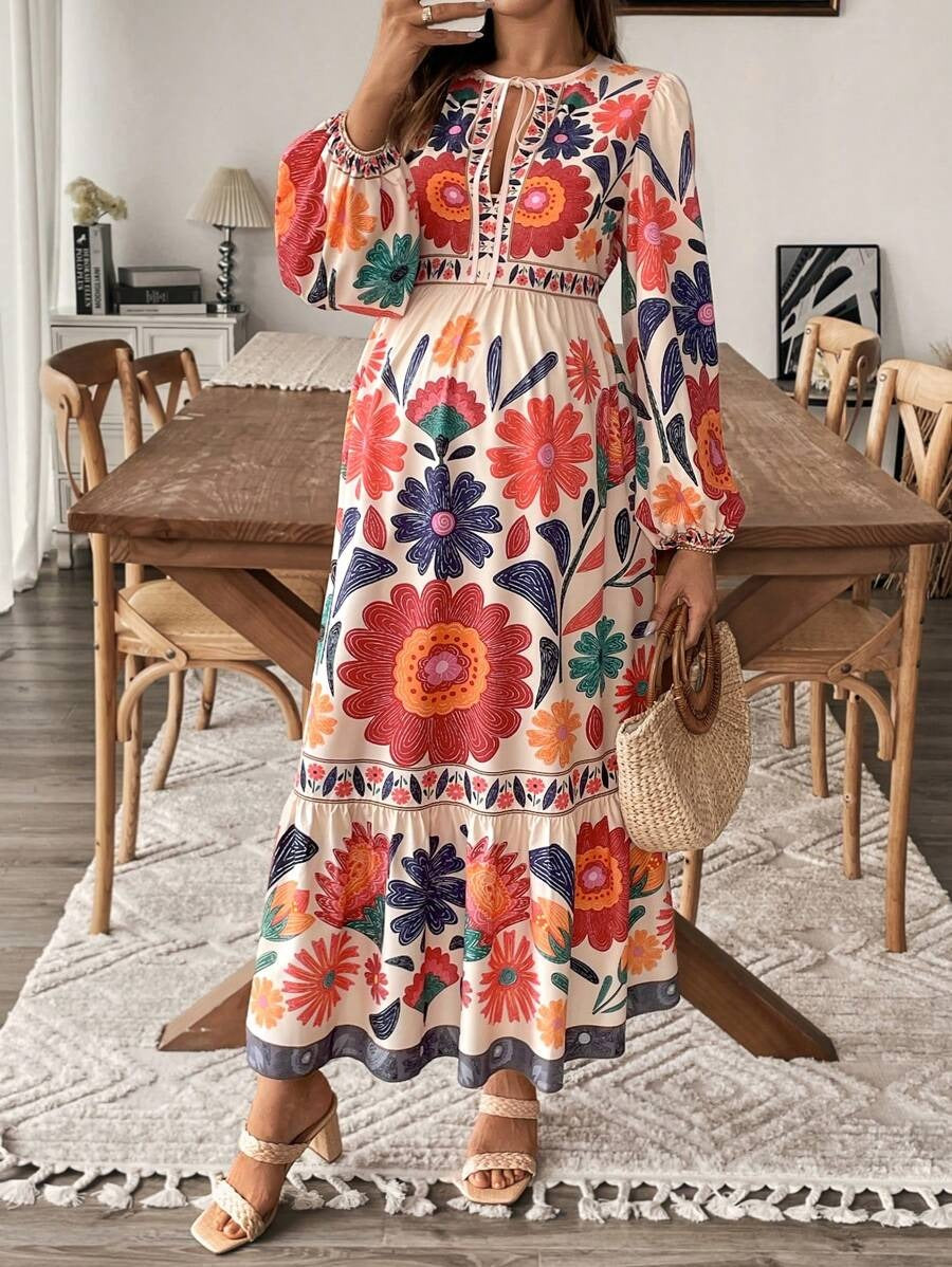 Zwangerschapsjurk met Plantenprint en Striksluiting