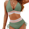 Deze stijlvolle en comfortabele bikini is ontworpen om je figuur te flatteren en je zelfvertrouwen te vergroten. Het high-waisted ontwerp biedt uitstekende buikcontrole, terwijl het kleurblokpatroon een moderne en trendy uitstraling geeft. Gemaakt van hoogwaardige, ademende en rekbare materialen, zorgt deze bikini voor een perfecte pasvorm en langdurig draagcomfort, of je nu ontspant aan het zwembad of actief bent op het strand.
