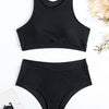 De bikini is de perfecte mix van sportieve functionaliteit en moderne stijl. Met een flatterende hoge taille en een ondersteunende racerback top biedt deze bikini comfort en zelfvertrouwen, of je nu zwemt, zonnebaadt of beachvolleybal speelt.