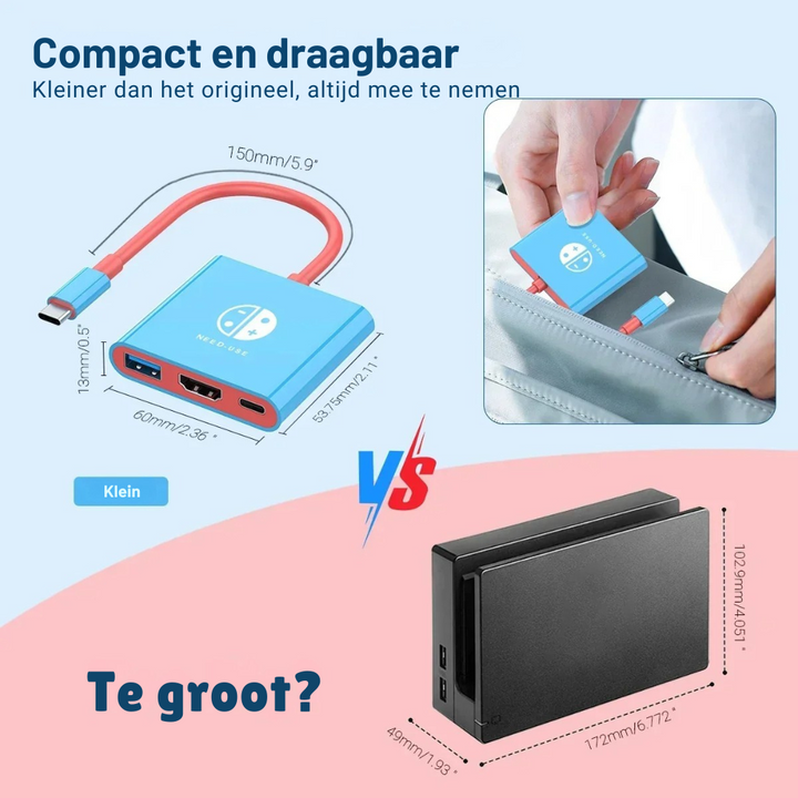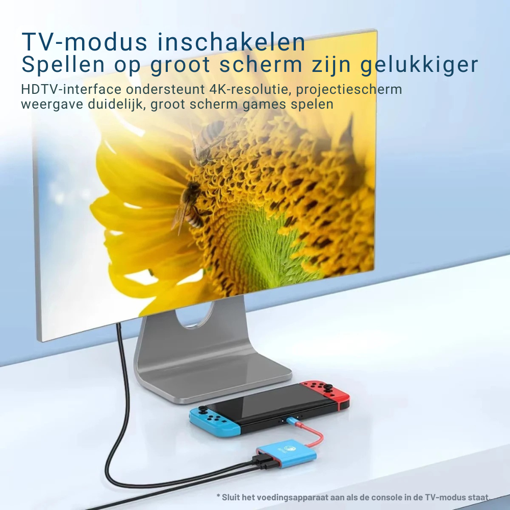 De GameLink Pro is een compacte en krachtige USB-C docking station die jouw Nintendo Switch, laptop of tablet moeiteloos verbindt met een tv of monitor in 4K kwaliteit. Dankzij de HDMI-compatibiliteit, USB 3.0-poorten en plug-and-play ontwerp is deze hub ideaal voor gamen, streamen of productief werken – waar je ook bent.