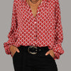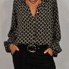 Verhoog je alledaagse stijl met onze Geometric Pattern Cotton Blend Blouse! Deze blouse is gemaakt voor de moderne vrouw die waarde hecht aan comfort en mode en combineert moeiteloos luxueus comfort met trendy design. Of je nu boodschappen doet, met vrienden gaat lunchen of naar je werk gaat, met onze blouse zit je altijd goed. Met het flatterende silhouet, de veelzijdige stylingopties en het opvallende geometrische patroon zul je overal de aandacht trekken. Zeg maar dag tegen compromissen op het gebied van stijl of comfort - met onze blouse kun je het allemaal hebben.  (Cm)