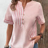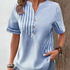 Geef je dagelijkse garderobe een upgrade met deze blouse, gemaakt van zachte, ademende stof om je de hele dag koel en stijlvol te houden. Met elegante verticale strepen en een chique mandarijnkraag geeft deze blouse een moderne draai aan klassiek maatwerk. De korte mouwen met manchetten zorgen voor een verzorgde maar toch ontspannen look die naadloos overgaat van werkkleding naar weekenduitjes.