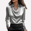Dames Satijnen Blouse met Gedrapeerde Kraag