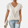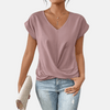 De klassieke V-hals en korte mouwen zorgen voor een strakke, veelzijdige look die prachtig combineert met jeans, shorts en rokken. Perfect voor vrouwen van middelbare leeftijd die op zoek zijn naar een nonchalant maar stijlvol kledingstuk voor elke dag. Deze effen top is moeiteloos te combineren van casual uitjes tot relaxte kantoorkleding.