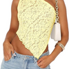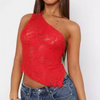 Deze asymmetrische top combineert een moderne snit met delicate kanten details voor een opvallende zomerlook. De schuine halslijn en open rug zorgen voor een unieke uitstraling die perfect past bij zowel casual als chique gelegenheden.