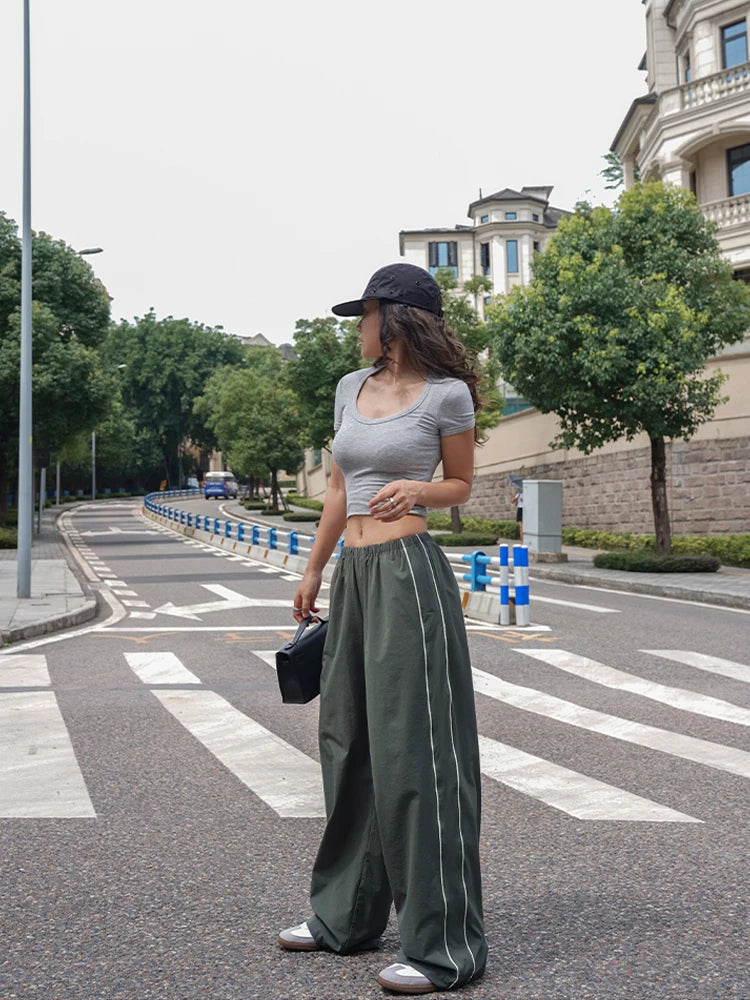 Baggy Cargo Parachute Pants met Trekkoord en Lage Taille