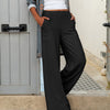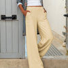 Ontspan in alledaags comfort met deze broek met wijde pijpen, ontworpen voor een chique, relaxte look. Deze broek is gemaakt van zijdezachte, ademende stof en valt soepel en beweegt moeiteloos mee. Met een hoge elastische tailleband en een relaxte pasvorm is deze broek perfect te combineren met T-shirts, blouses of cropped tops – ideaal voor thuis, boodschappen of informele uitstapjes.