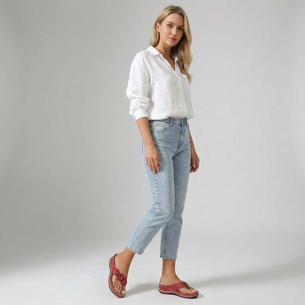 Emma – Elegante Linnen Dames V-Hals Top voor een Stijlvolle Look