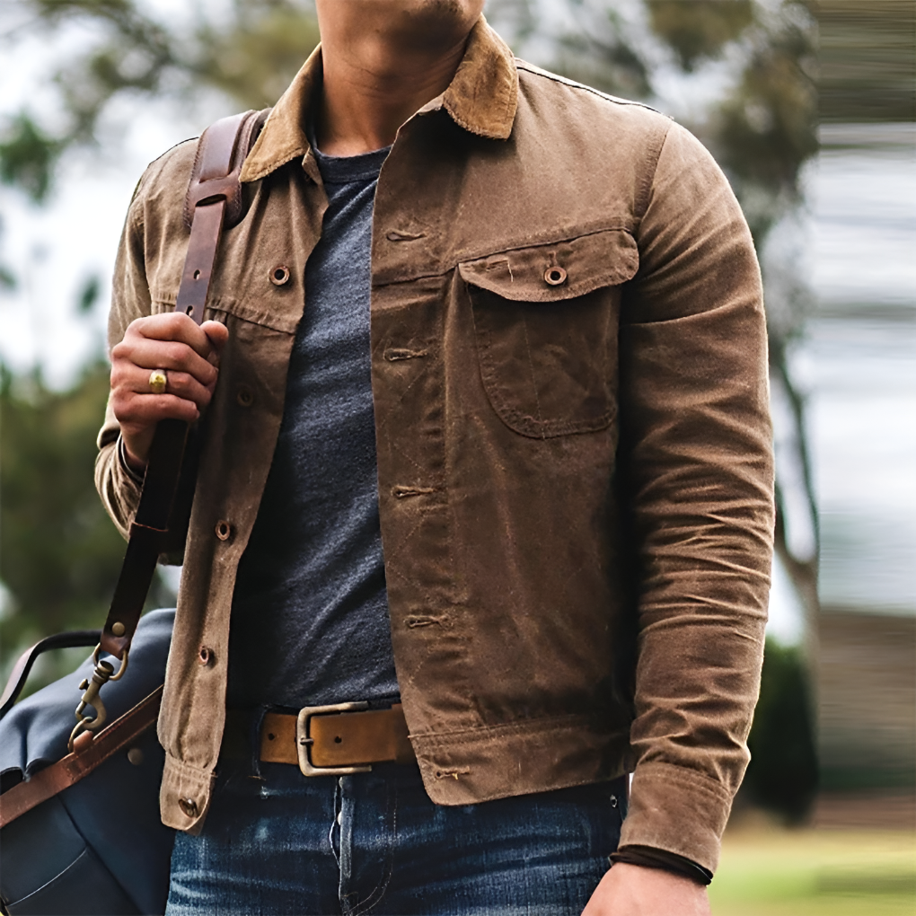 Vintage robuuste outdoorjas met knoopsluiting voor heren