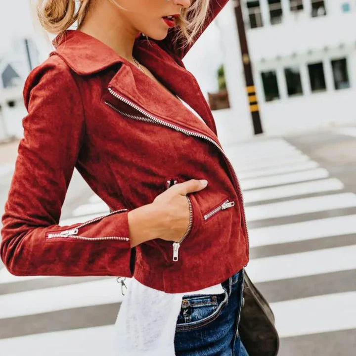 Ontdek de Robbie Faux motorcycle stijl leren jas dames, de perfecte jas om elke look een gedurfde upgrade te geven. Deze jas, gemaakt van hoogwaardige faux leer, combineert een klassieke biker stijl met moderne details zoals zilverkleurige ritsen en een opvallende rode kleur. Ideaal voor zowel dagelijks gebruik als een avondje uit, deze jas biedt comfort en een unieke uitstraling. Draag hem over een T-shirt en jeans voor een moeiteloze, coole look die altijd in de mode is.