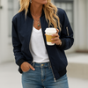 Vrouwen houden van dit jack vanwege het luchtige gemak, de praktische ritszakken en de tijdloze bomberesthetiek - een lichtgewicht jack dat moeiteloos elk casual ensemble verbetert.