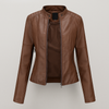 Geef je garderobe een upgrade met dit strakke PU-leren jack, met een scherpe opstaande kraag en een volledige ritssluiting voor een moderne, minimalistische look. Het jack is gemaakt van waterafstotend kunstleer en heeft een gepolijste streetstyle met een vleugje motorstijl – ideaal om te combineren met T-shirts of jurken.