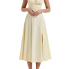 Flatteuze pasvorm: De aansluitende bustiertop van onze zomerjurk creëert een flatterend silhouet, terwijl de uitlopende rok mooi uitloopt voor een vrouwelijke look die zowel comfortabel als stijlvol is. De lieve halslijn heeft zachte cups en onze verbazingwekkende baleinen die de taille op zijn plaats houden en een prachtig silhouet creëren.