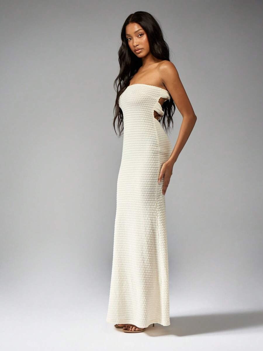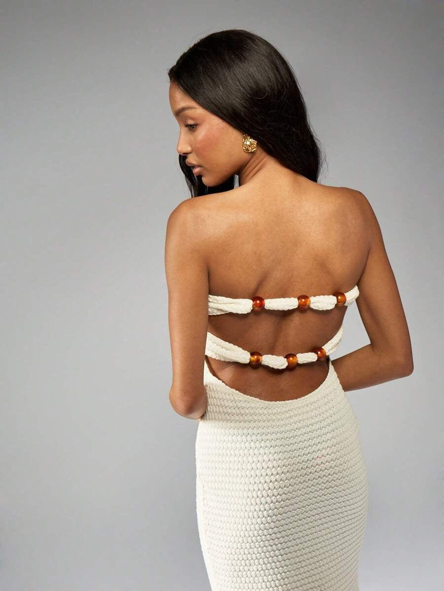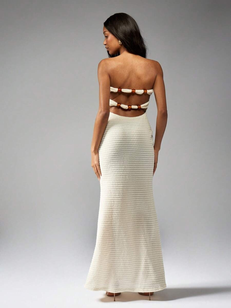 Gehaakte Bandeau Maxi Jurk met Kralen en Cut-Out Rug