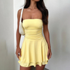 Deze strapless mini-jurk combineert het iconische Y2K-ontwerp met hedendaagse flair. De geplooide details en strakke pasvorm accentueren je figuur, terwijl de zachte viscose stof zorgt voor comfort tijdens warme zomerdagen.