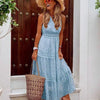 De maxi-jurk is een luchtige en stijlvolle keuze voor zomerse dagen. Met een flatterende V-hals en mouwloos ontwerp biedt deze jurk ultiem comfort en een elegante uitstraling. De lichte stof en A-lijn pasvorm zorgen voor een vrouwelijke en comfortabele fit.