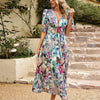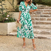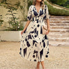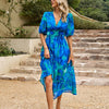 Deze chique en elegante jurk brengt warmte in je zomerdagen met haar opvallende print en felle kleuren, zodat je opvalt in elke menigte en je dagelijkse garderobe een beetje opfleurt.