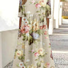 Midi-jurk met Ronde Hals en Korte Mouwen in Khaki Bloemenprint