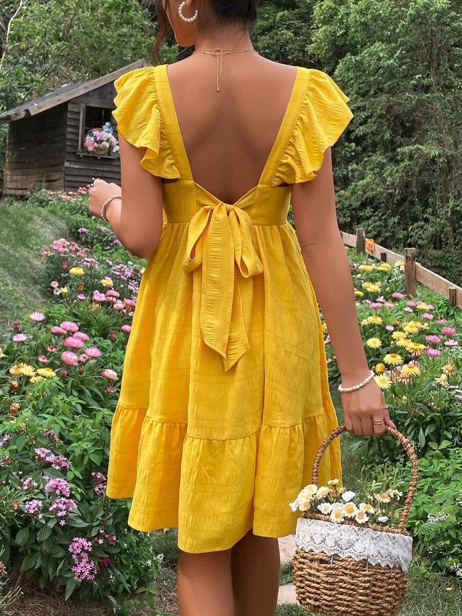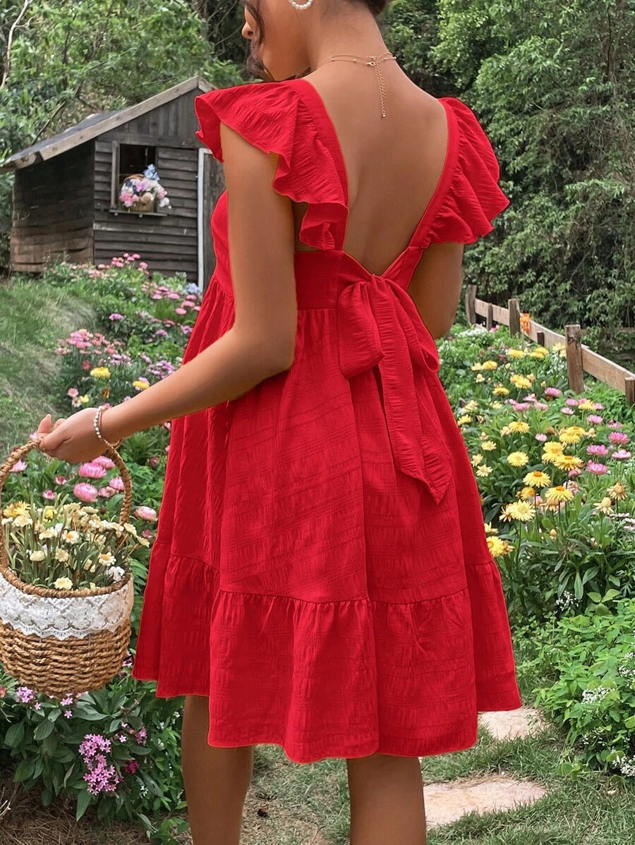 Ribgebreide Zwangerschapsjurk met Open Rug en Strikdetail