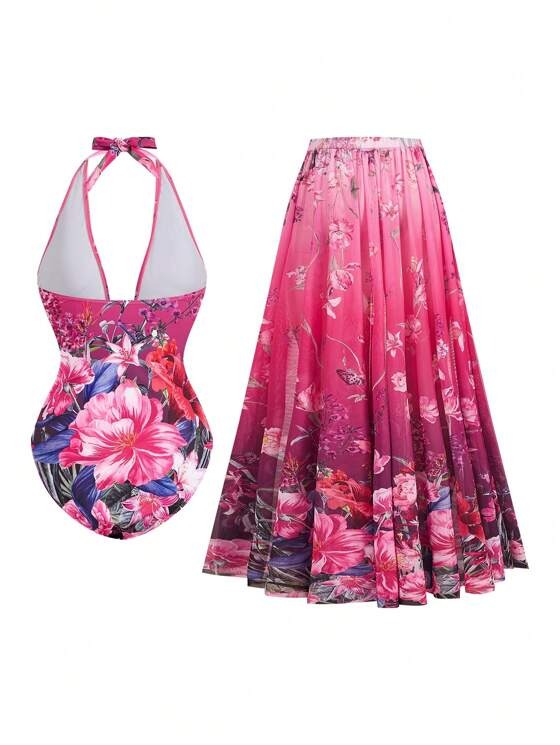 Romantisch Badpak met Bloemenprint en Omslagrok