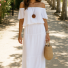 De Maxine zomerjurk is jouw ultieme metgezel voor warme zomerdagen en ontspannen avonden. Met zijn trendy off shoulder ontwerp straalt dit jurkje moeiteloze elegantie uit, terwijl het lange, soepele silhouet comfort en stijl combineert.