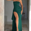 Voeg een vleugje glamour toe aan je garderobe met deze strapless lange jurk, perfect voor bruiloften, feesten en andere speciale gelegenheden. Het elegante ontwerp met hoge split en geplooide details zorgt voor een stijlvolle en vrouwelijke uitstraling.