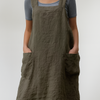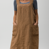 Combineer moeiteloze stijl met praktisch comfort in deze damesjurk in schortstijl van katoen en linnen. Hij is geschikt voor dagelijks gebruik en perfect voor koken, tuinieren of casual uitstapjes dankzij de ademende stof, ruime zakken en relaxte pasvorm. De gekruiste bandjes op de rug en de strikbandjes aan de zijkanten zorgen voor een stevige maar verstelbare pasvorm die flatterend is voor een breed scala aan lichaamsvormen.