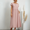 With its classic O-neckline, short sleeves, and natural waistline, this pullover dress blends timeless style with casual ease — perfect for vacations, weekend outings, or simply enjoying warm sunny days. The solid color design and subtle shirring details make it easy to dress up or down depending on the occasion.