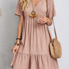 Deze luchtige A-lijn jurk is jouw perfecte metgezel voor zonnige dagen, strandwandelingen of ontspannen vakanties. Het eenvoudige ontwerp wordt verfraaid met subtiele ruches, waardoor je moeiteloos stijl en comfort combineert.