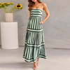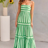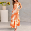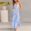 Deze luchtige maxi-jurk met speelse strepen is jouw ideale metgezel voor zonnige dagen. Of je nu flaneert langs het strand of geniet van een zomerse picknick, deze jurk combineert comfort met stijl.