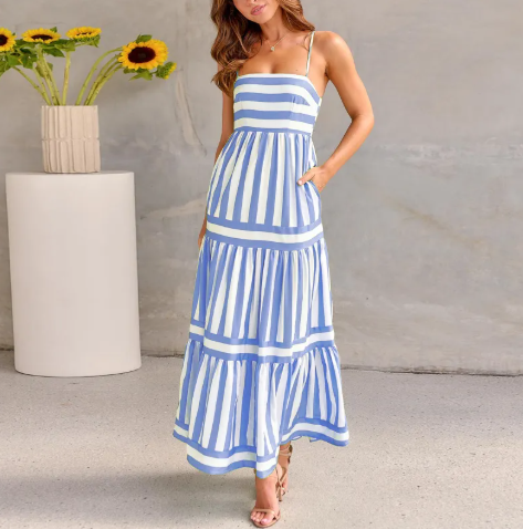 Chique Elegante Zomerse Maxi Jurk met Vloeiende Pasvorm