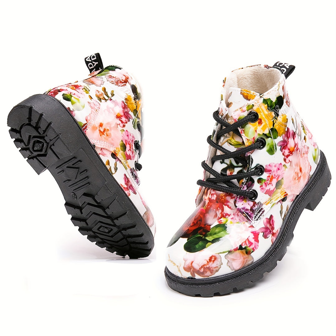 Bloemenprint plus fleece sneeuw laarzen veterschoenen voor meisjes - Anji
