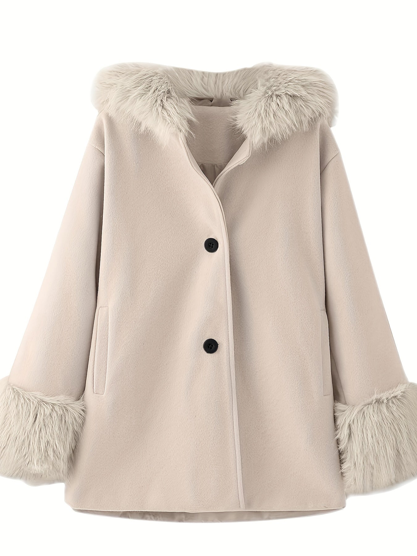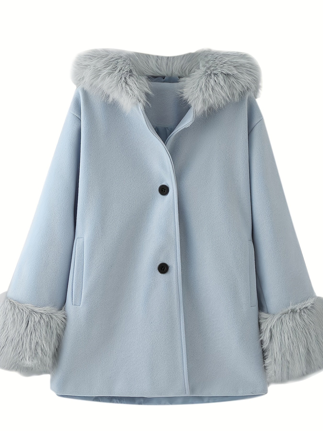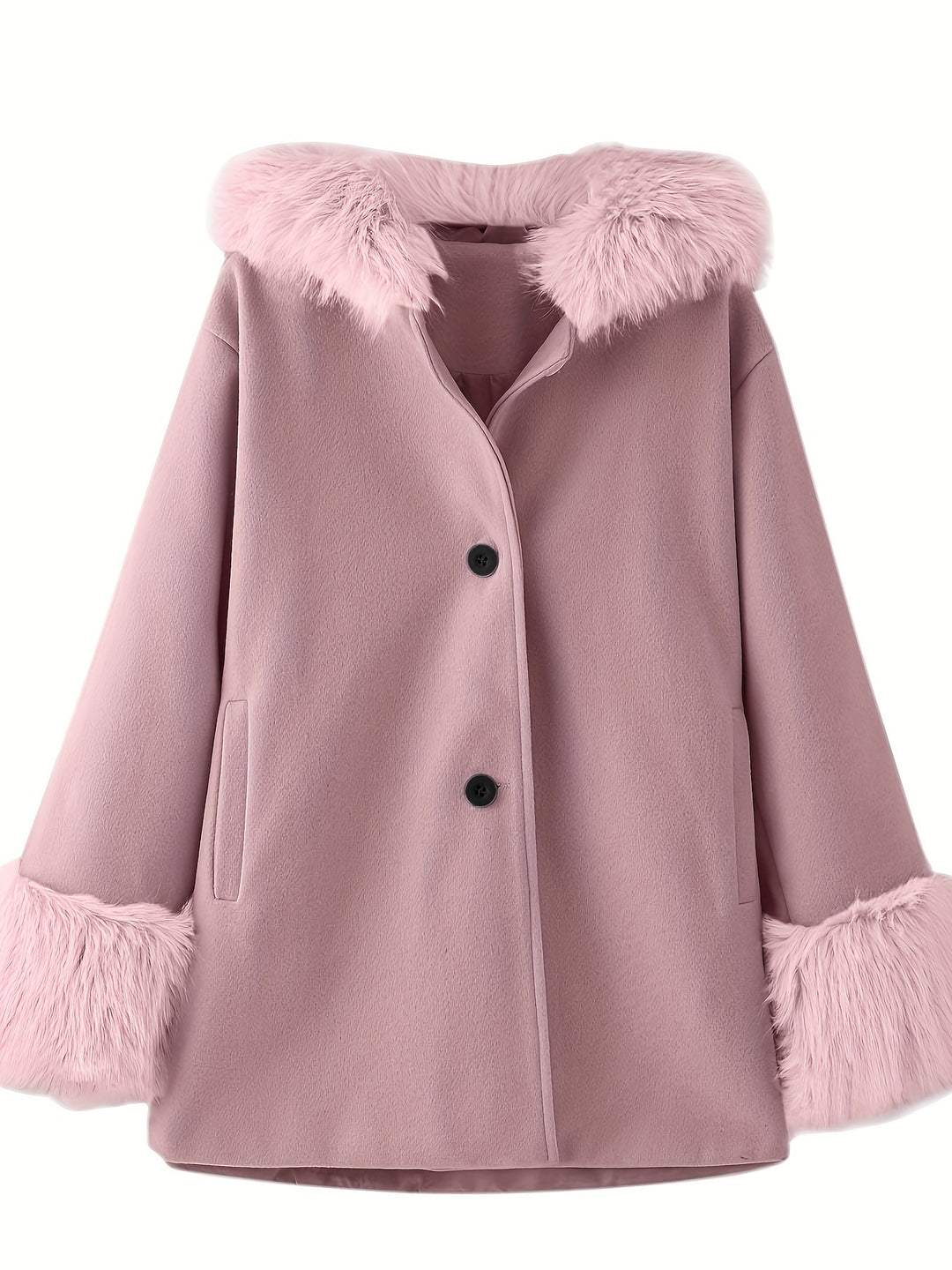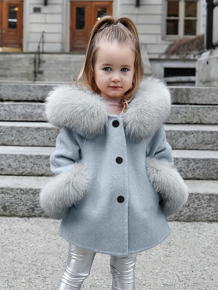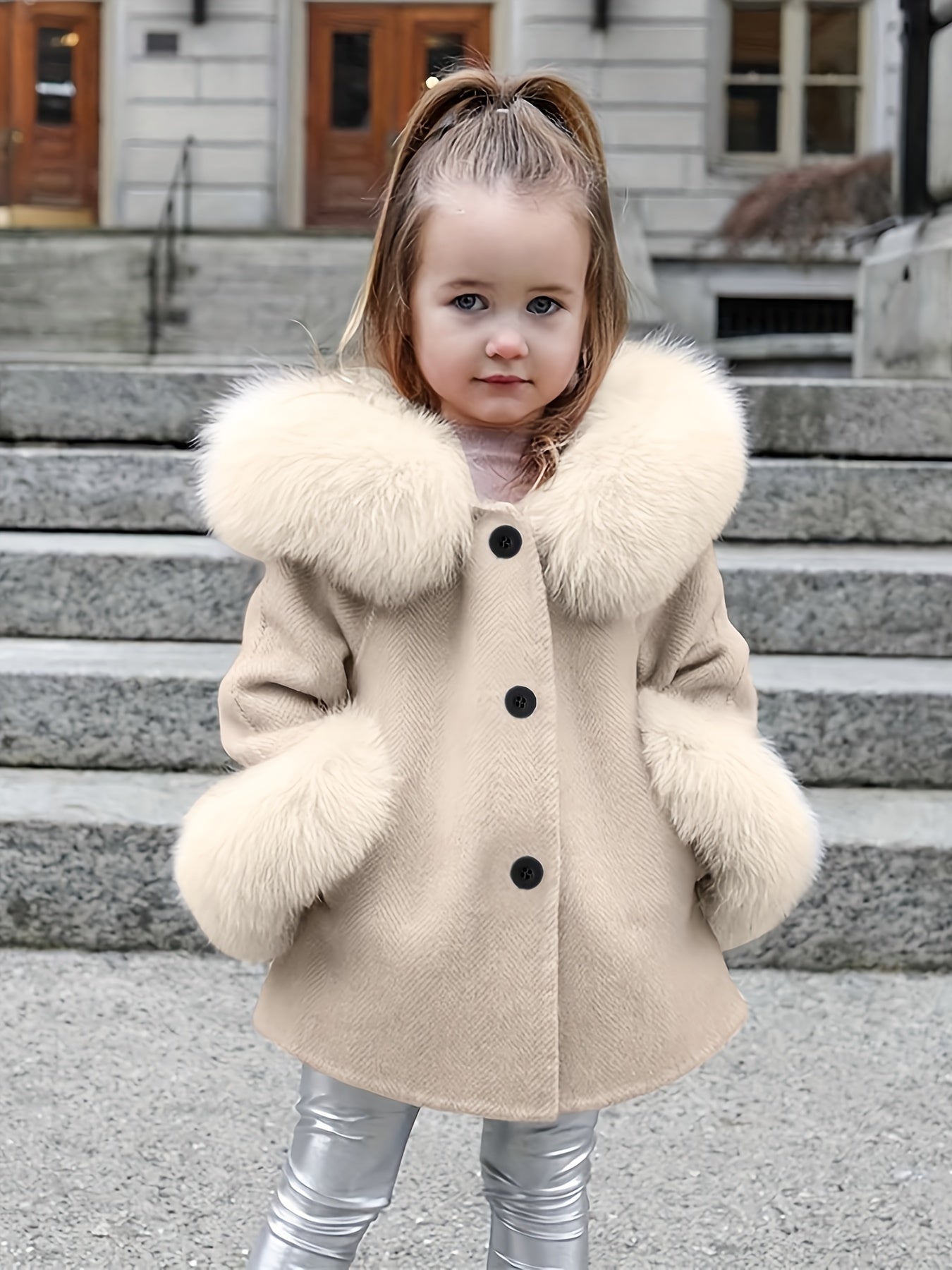 Omhul je kleintje in gezellige warmte met deze schattige imitatiebontjas, perfect voor winterse uitjes. De zachte bontaccenten op de kap en manchetten zorgen voor extra warmte en comfort, ideaal voor koude dagen. Met de knoopsluiting aan de voorkant is de jas gemakkelijk aan en uit te trekken, en biedt het een knusse pasvorm voor je kind. Of het nu voor speciale gelegenheden of dagelijks gebruik is, deze jas combineert comfort met een luxueuze uitstraling.