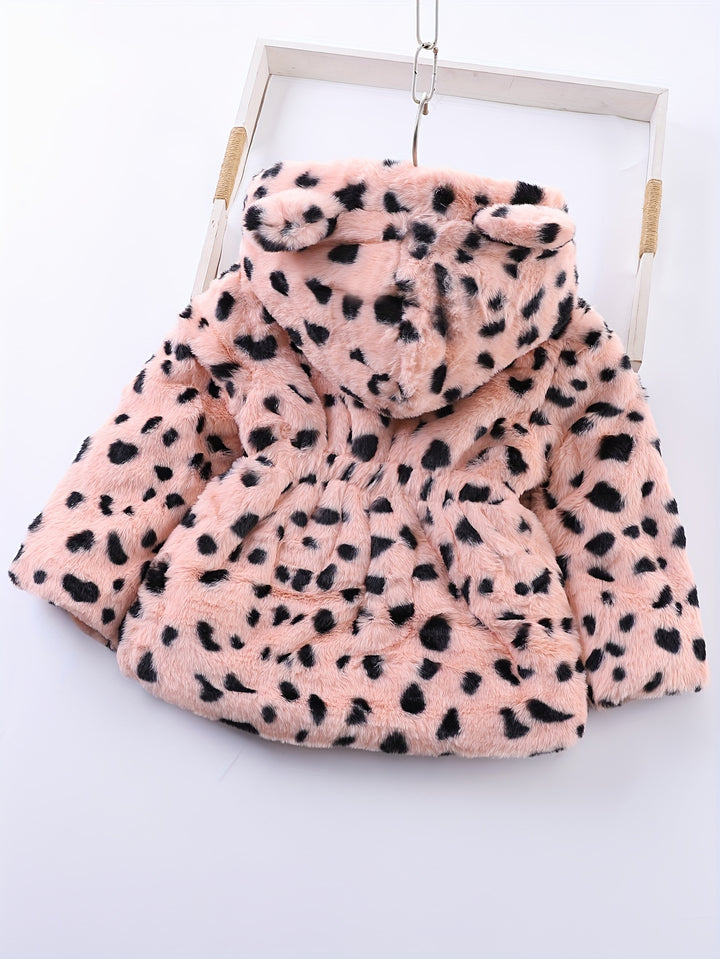 Fleece capuchonjas met luipaardprint voor meisjes in de winter - Reina