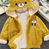 Deze schattige winterjas van corduroy is perfect om je kleintje warm te houden tijdens koude dagen. De zachte capuchon met berenoortjes zorgt voor een speels accent, terwijl de rits en elastische boorden extra bescherming bieden tegen de kou. De corduroy stof geeft de jas een comfortabele uitstraling, ideaal voor buitenavonturen. Met een leuk berenpatch detail, wordt deze jas al snel de favoriet van je kind deze winter.