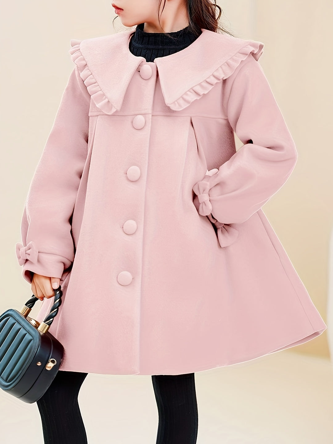 Meisjes elegante knoopsluiting warme jas met ruches kraag - Lily