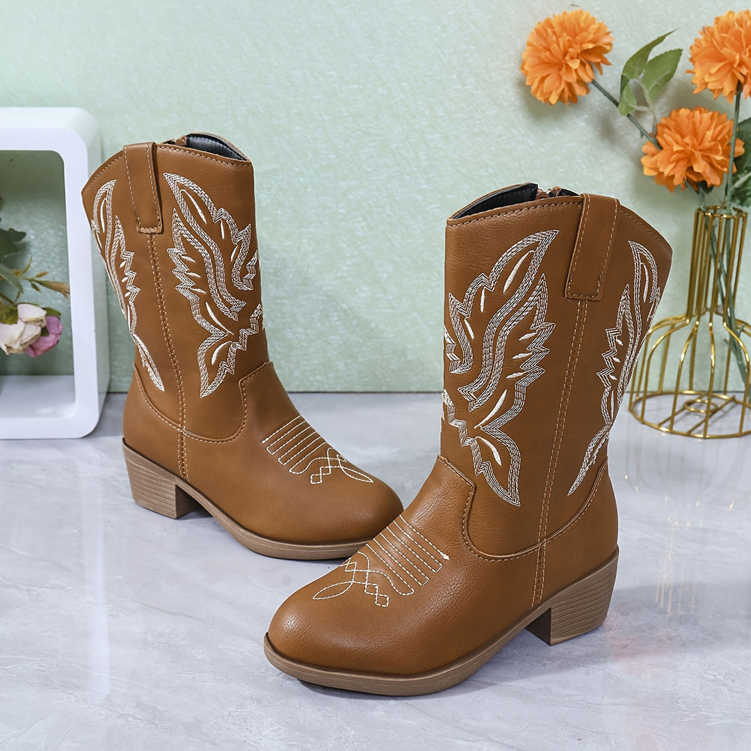 Meisjes vintage geborduurd patroon rits lchtgewicht antislip laarzen - Nikka