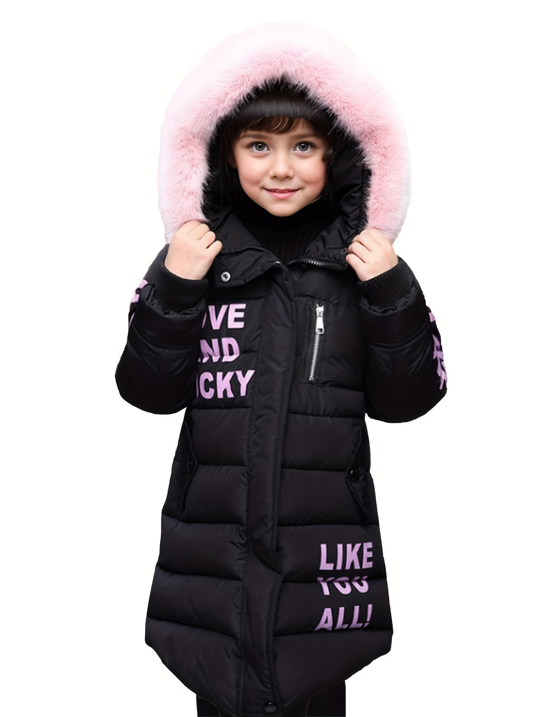 Meisjes winter schattige polyester parka met kap en ritsdetail - Denice
