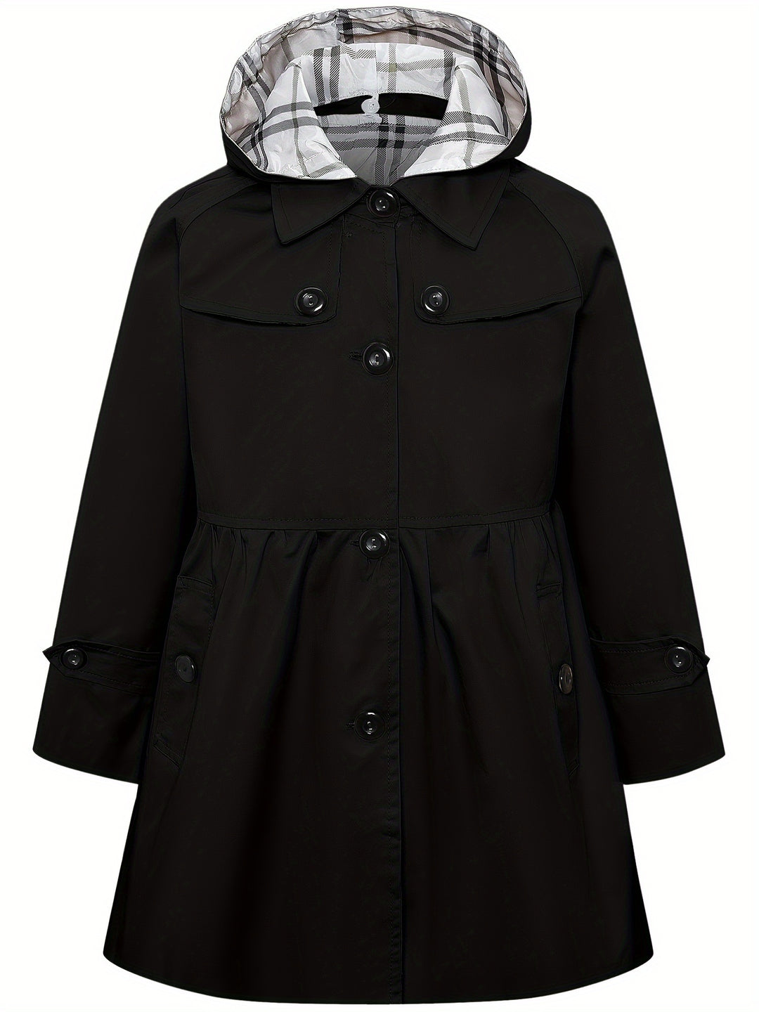 Trenchcoat met capuchon voor meisjes rij knopen halflange jas - Haicey
