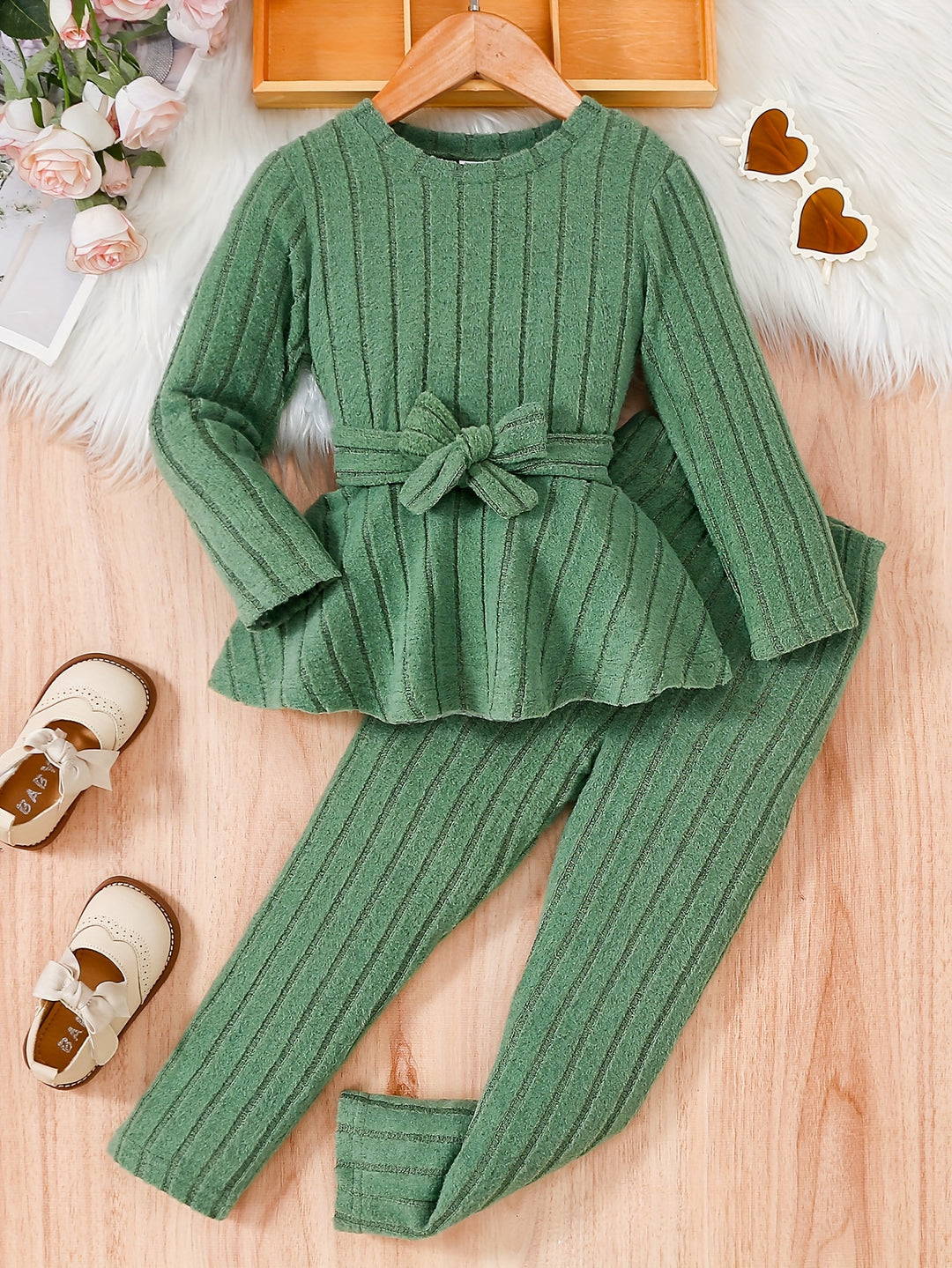 Meisjes kids 2-delige outfits casual ronde hals lange mouw top met strik & broek - Ember
