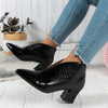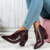 De stiletto enkellaarzen combineren verfijnde stijl met moderne flair. Met een slanke V-halsuitsnijding, spitse neus en glanzend lakleer met subtiel krokodillenpatroon, zijn deze laarsjes de perfecte keuze voor een chique uitstraling.