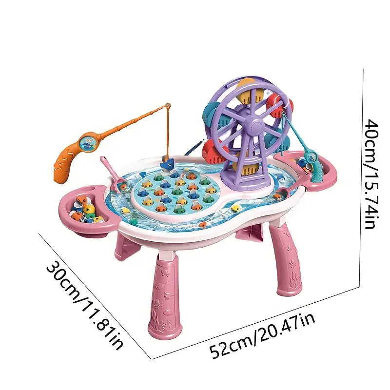 Breng plezier en educatie samen met dit kleurrijke magnetische visserswiel speelgoed! Speciaal ontworpen voor kinderen, biedt dit interactieve water speelplatform urenlang vermaak terwijl het de hand-oogcoördinatie en fijne motoriek bevordert. Met levendige kleuren en magnetische vissersfiguren is het een ideale keuze voor zomerse dagen en verjaardagsfeestjes.