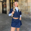 De Denim Set biedt een chique en comfortabele combinatie van stijl en functionaliteit onmogelijk. Deze tweedelige outfit bestaat uit een unieke top met een fundamentele skort, de elegantie van een rok verspreid met het comfort van een short. Gemaakt van premium denim, perfect voor zonnige dagen, casual uitjes of festivalavonturen.