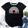Valentina – Plus Size T-Shirt met Regenboog Patchwork en Korte Mouwen