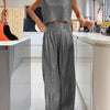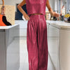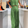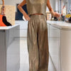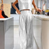 Casual Glanzend Damesvest En Wijde Broek Set - Amy